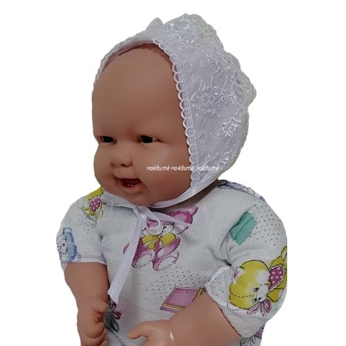 Красивый, нарядный чепчик с кружевом из гипюра.