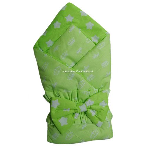 Одеяло выполнено из ткани с двумя разными рисунками, размер 100*100 см. Одеяло можно использовать для укутывания новорождённого, воспользовавшись для закрепления бантом на резинке, который идёт в комплекте.