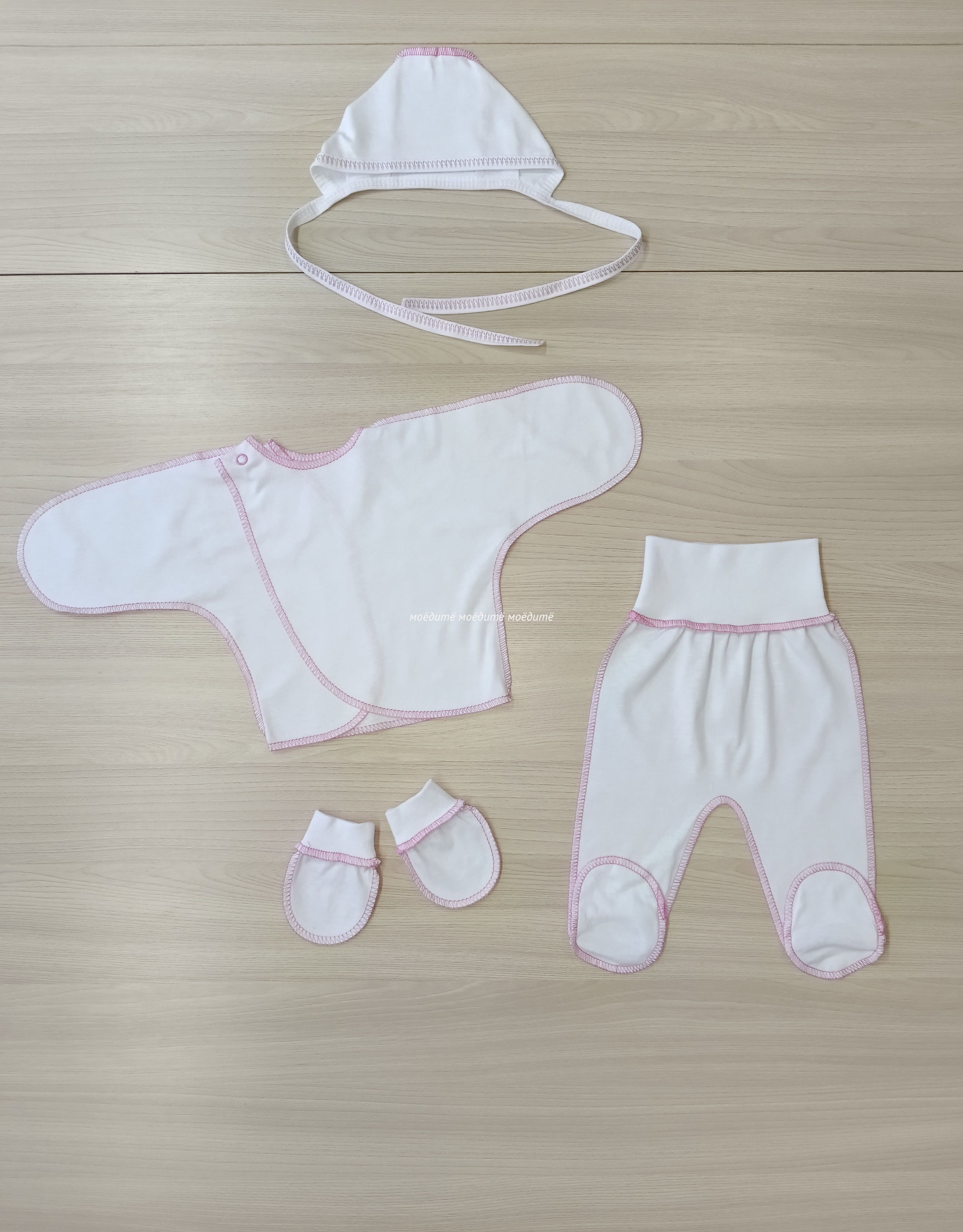 Комплект белый с розовой обработкой швов.