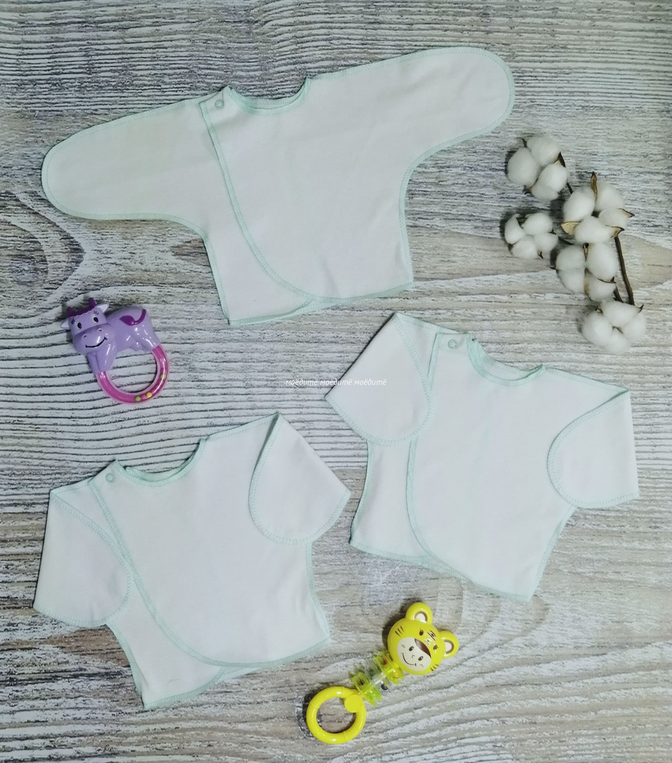 "МоёДитё" распашонка "Нарядная" белая + мята РК003 "Гардения" для новорожденных в Волжском
