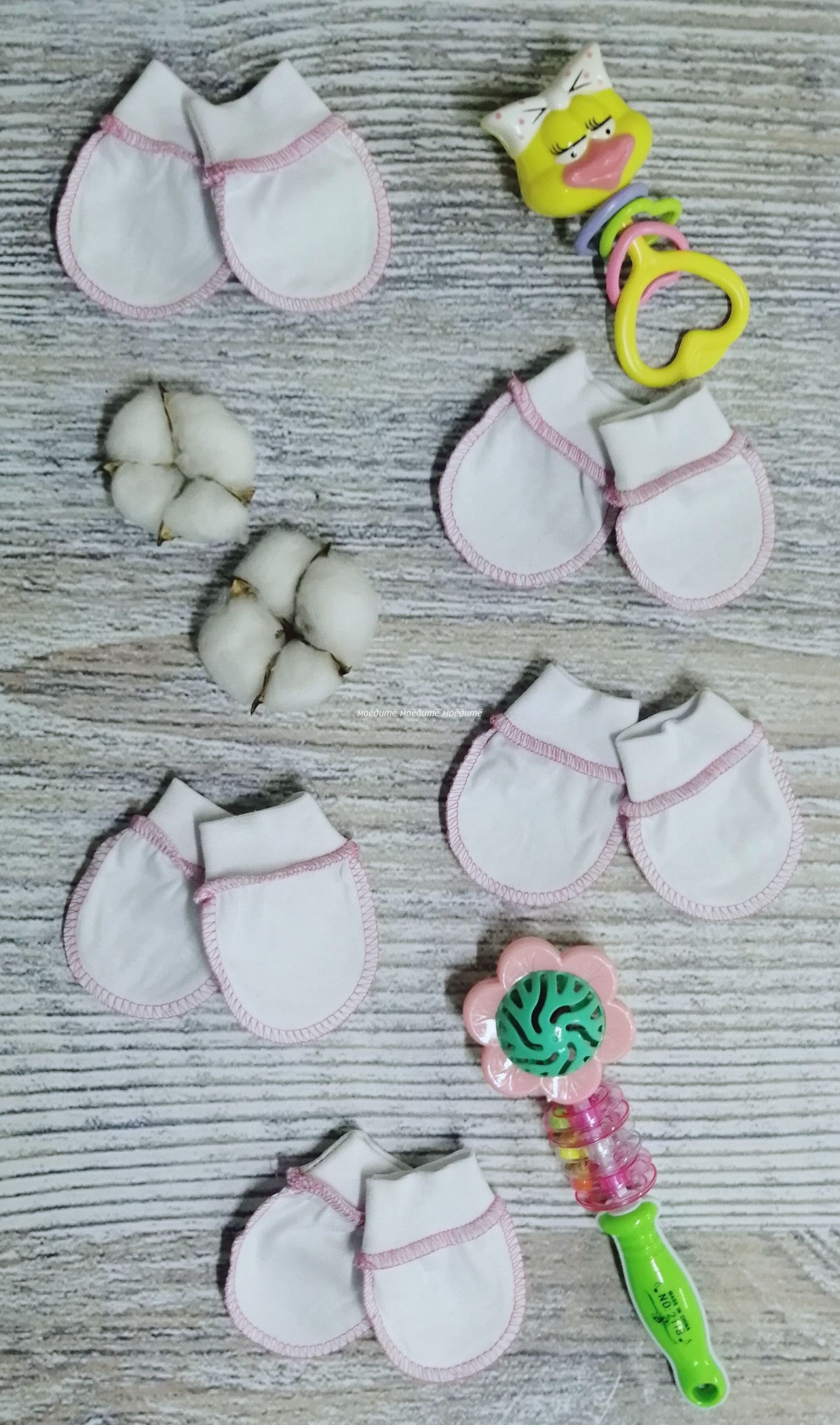 "МоёДитё" царапки кулирка белые с розовым ЦК018 "Гардения" в Волжском